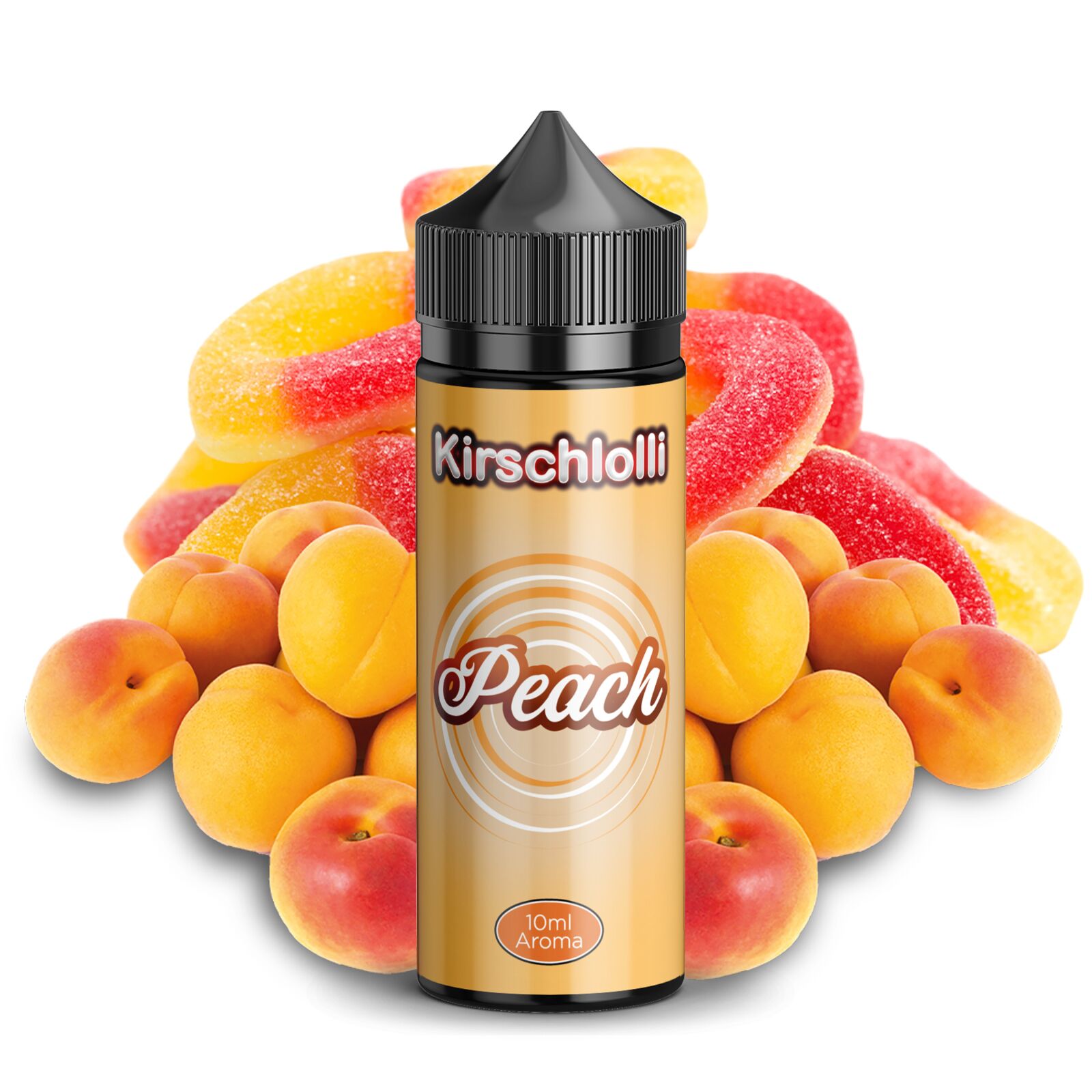 Kirschlolli Pfirsichringe Aroma – der authentische Geschmack von Fruchtgummi-Pfirsichringen, intensiv umgesetzt.