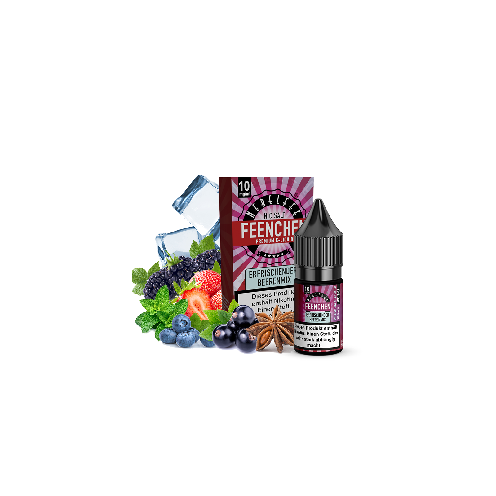 Nebelfee Erfrischender Beerenmix Feenchen Nicsalt Liquid 10 ml 10 mg mit Banderole