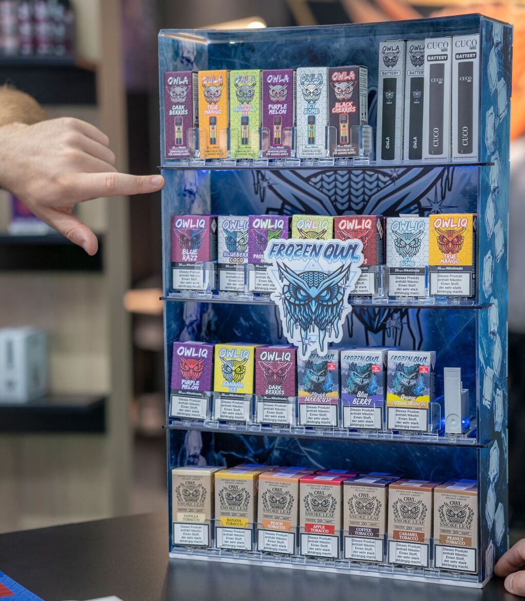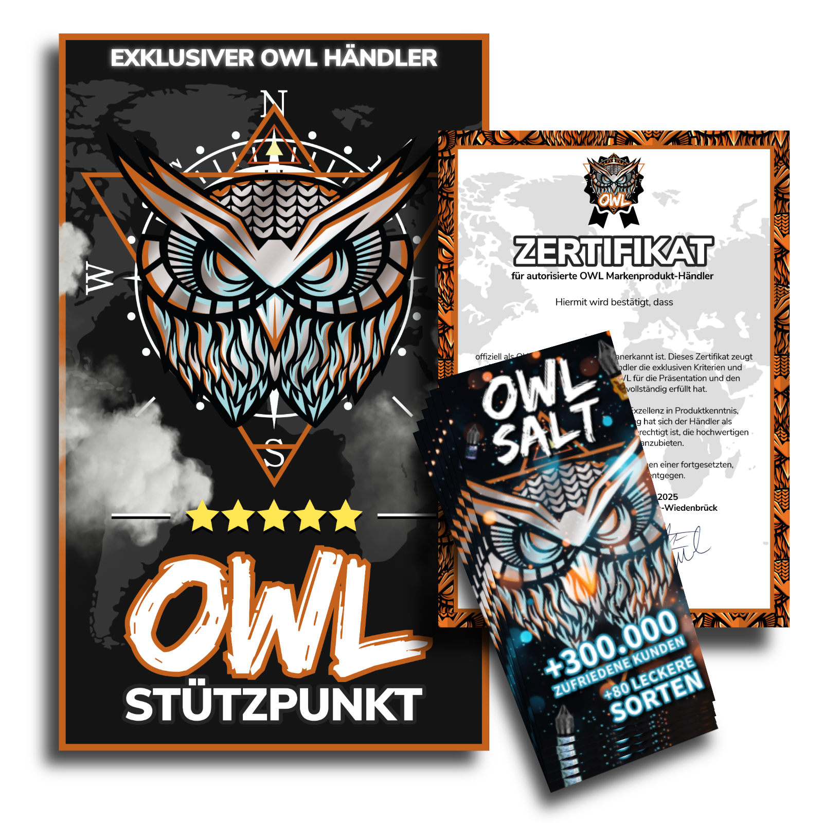 Das Stützpunkt-Programm richtet sich an engagierte Händler, die unsere Markenprodukte mit Fachwissen, Servicequalität und einem hochwertigen Einkaufserlebnis verbinden. Mit dem OWL Stützpunkt-Status zeigen Sie, dass Sie mehr bieten als nur Verkauf – Sie stehen für Kompetenz und Verlässlichkeit im Bereich hochwertiger Nikotinsalze.