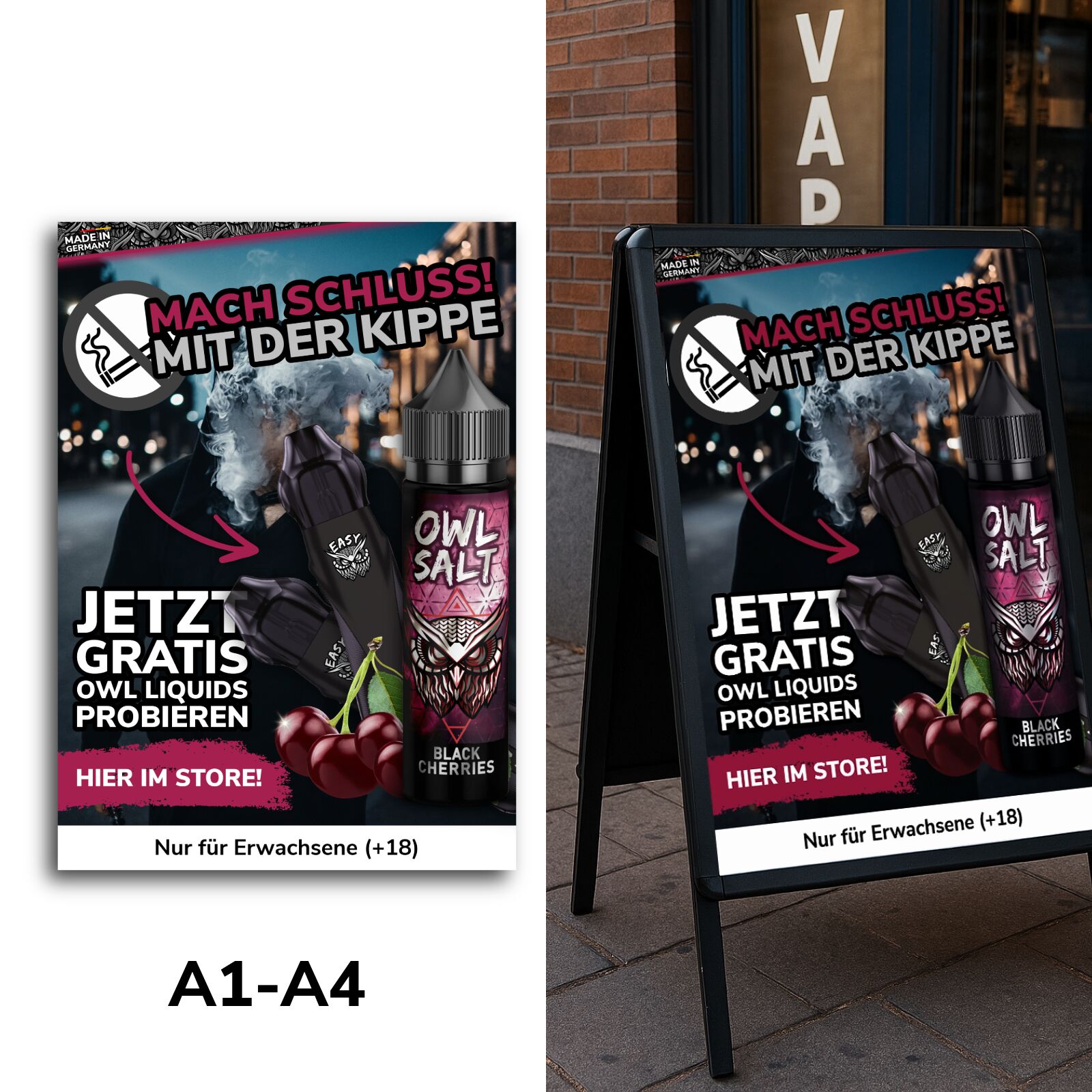 1x OWL Stützpunkt-Plakat (Hinterglasfolie) Für eine gut sichtbare Platzierung an Schaufenster oder Eingangstür.